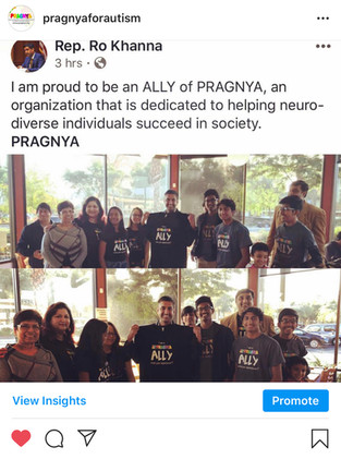 Ms. Sreedhar provides more insight into Michelle’s passion, with stories of her selfless initiative, from collecting lunch money for PRAGNYA walking classroom to classroom, to raising funds by being pied in the face, to being an anchor ally organizer of PRAGNYA’s Step Up event for Autism Acceptance that happens every April. “Michelle also initiated and came up with the idea of something called Ally bonding,” Ms. Sreedhar recalls, “an initiative which brings together allies to foster lifelong friendships. She was also the first ever Ally to pipe up and proudly announce that she has neurodiverse friends that she would hang-out with, lifelong. One poignant moment I remember was meeting Michelle for the first time and how she cried when I shared statistics on how developmentally disabled women are at highest risk of being victims of sexual abuse. It was then that I realized how empathetic she was and how affected she was by what I had shared with her“ Michelle won State and Congressional Recognition for all her incredible contributions as an Ally, as well as recognition from the Milpitas Unified School District school board for incredible work she has spearheaded with her work at the PRAGNYA Club at Milpitas High School including the Resolution to declare April as Autism Acceptance Month in the district. Speaking emotionally of Michelle, Ms Sreedhar shared, “Allies like Michelle give me hope and faith that the world will be a safer, kinder and more compassionate place for neurodiverse children like my daughter ...”. In the future, Michelle hopes to be a Special-Ed teacher and continue her journey as an Ally!!